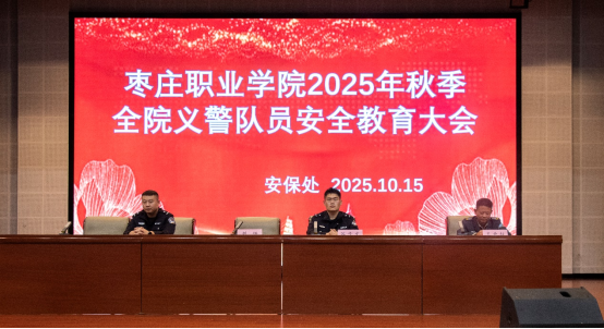 10月15日,安保处在学院礼堂组织全院义警队员开展安全教育培训活动。高新区兴仁派出所民警谷子文、学院安保处副处长刘强,学院警务室、保安队相关负责同志以及全院230余名义警队员参加了本次培训活动。