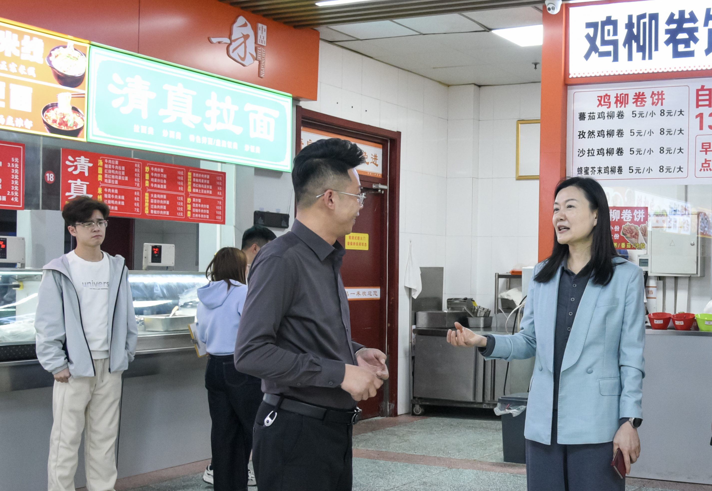 检查组一行先后来到学生公寓、餐厅、超市及建筑工程系实习实训室等关键场所,实地查看安全管理措施落实情况,详细了解假期值班安排、设备运行、消防设施、食品卫生及用电安全等重点环节,并与现场师生、工作人员亲切交流,倾听意见建议。