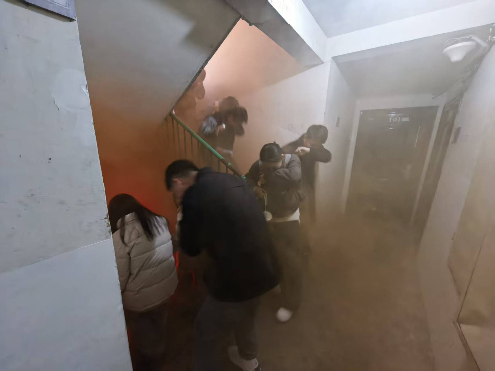 消防知识培训结束后,火灾逃生模拟演练正式开始。随着模拟火灾警报声响起,演练现场立即弥漫起模拟烟雾,各区域负责人迅速到位,组织参与人员按照预定的逃生路线,用湿毛巾捂住口鼻,弯腰低姿,快速有序地向指定安全区域疏散。在疏散过程中,大家严格遵守逃生规则,不拥挤、不慌乱,展现了良好的应急素养。短短几分钟内,所有参与人员均安全撤离至集合点,整个逃生演练过程紧张有序、衔接顺畅。